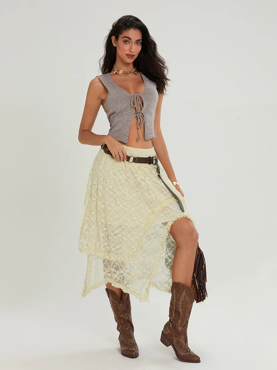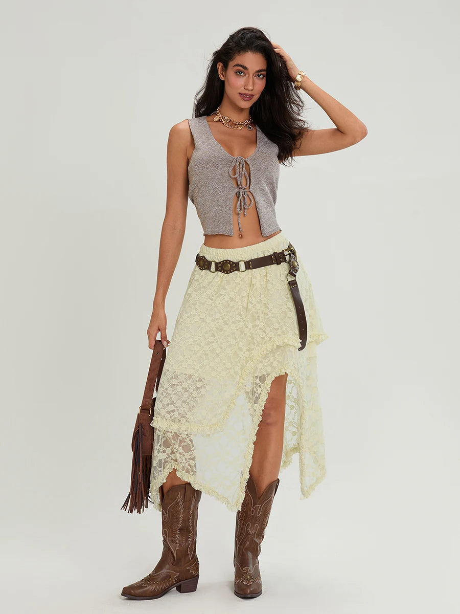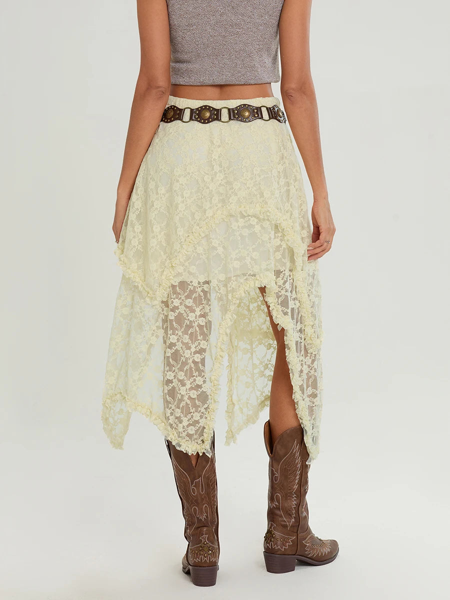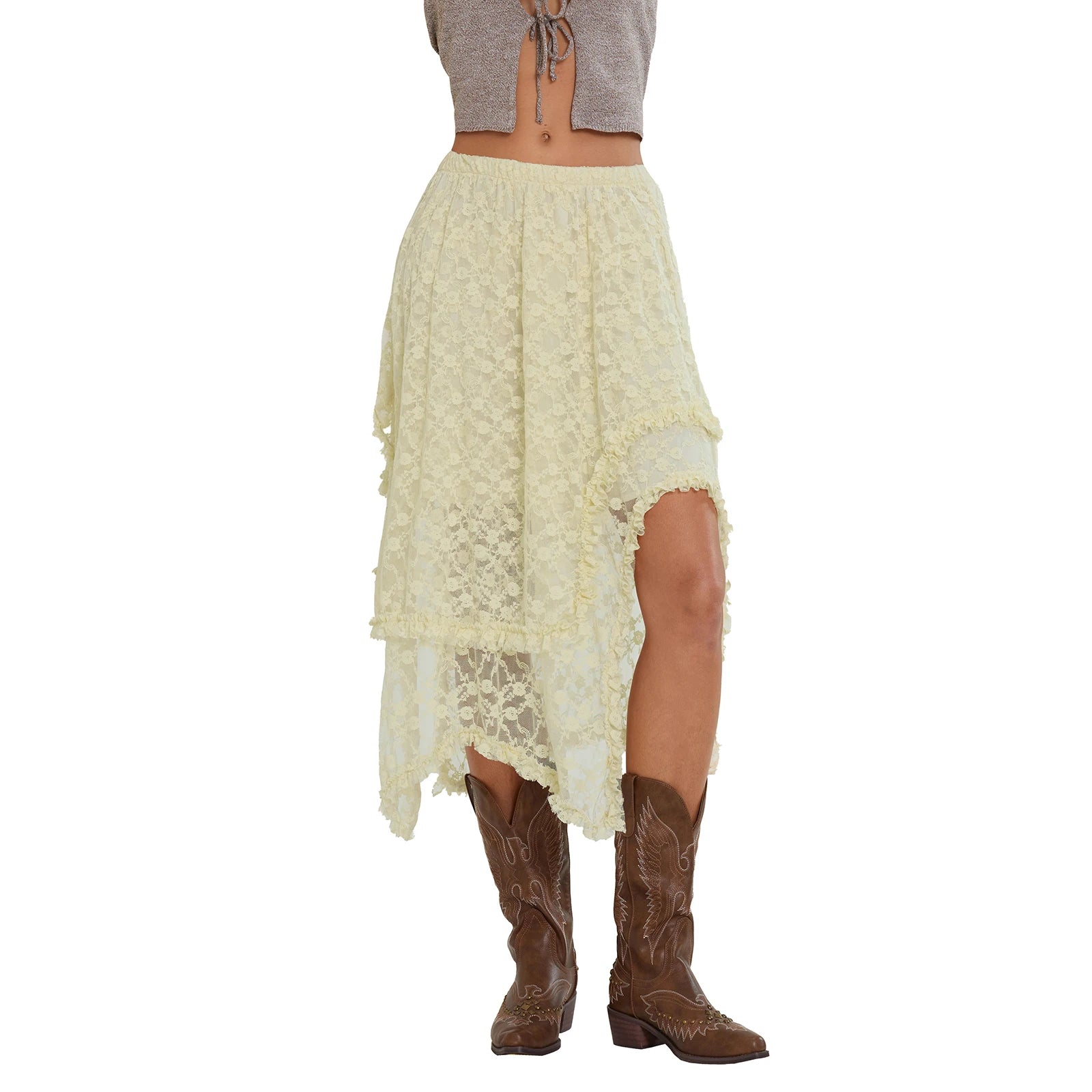 Women's Fashion Midi Skirts Lace Irregular Hem Low Waist Skirts Summer Fashion Casual Skirts