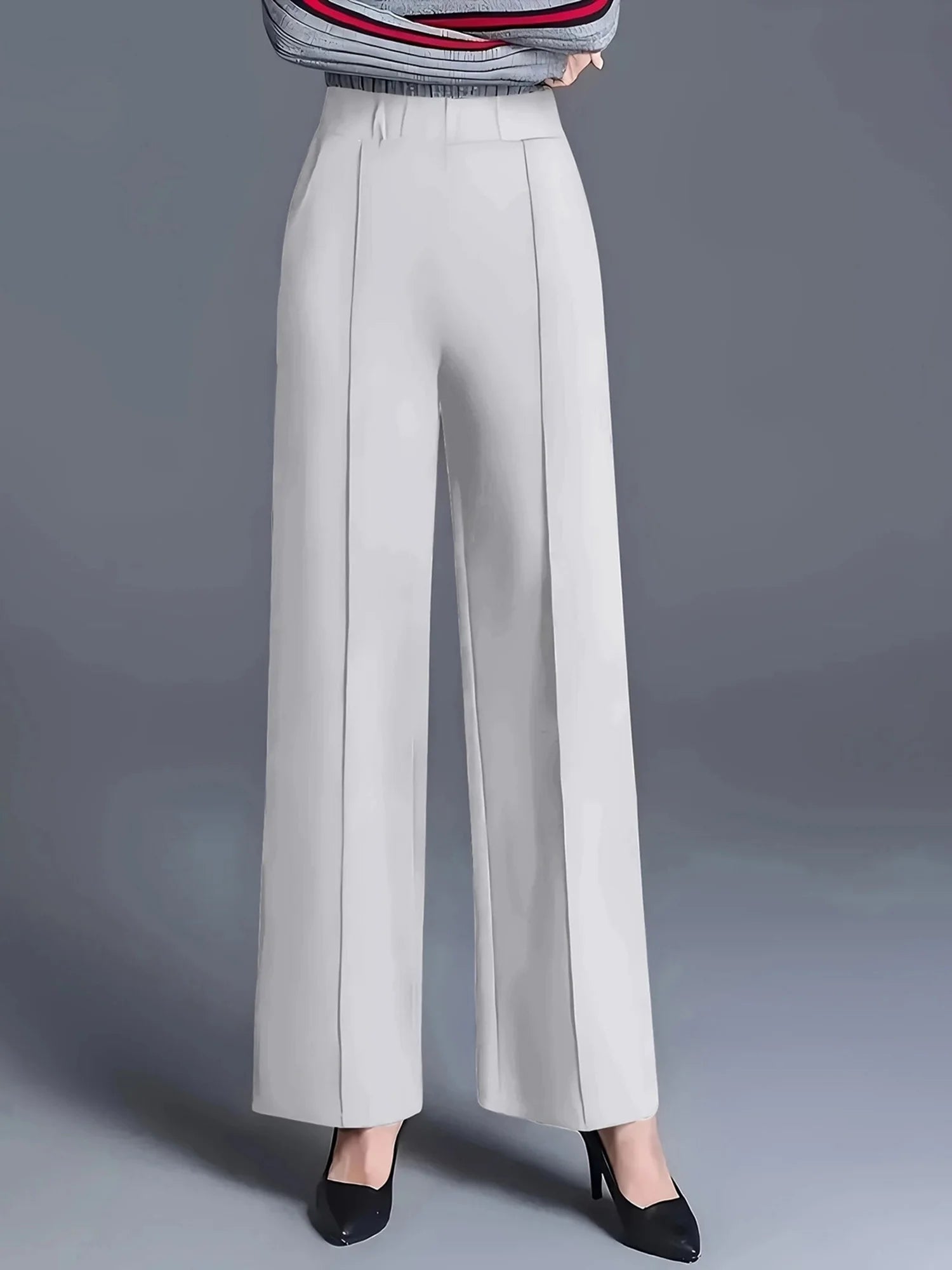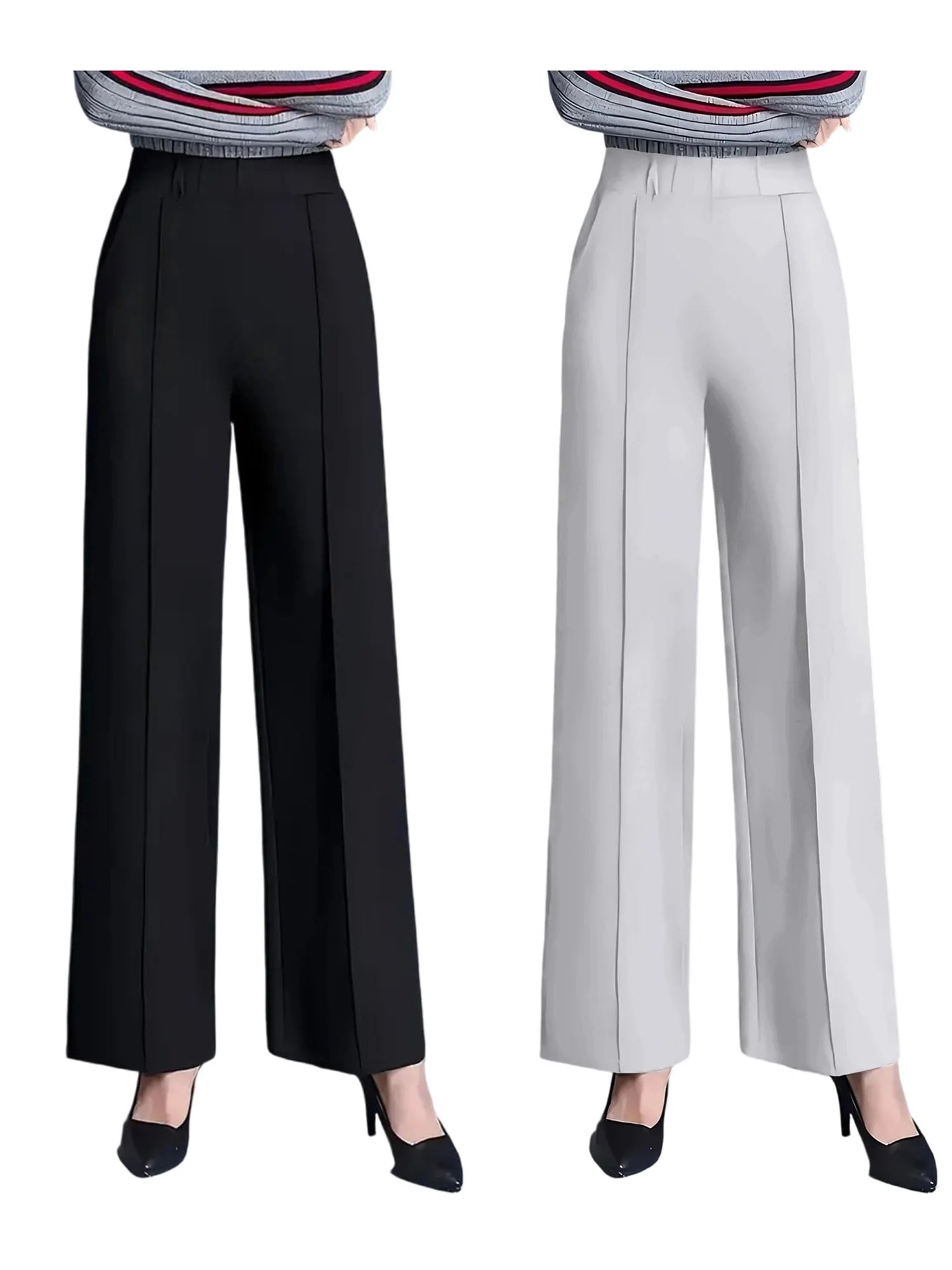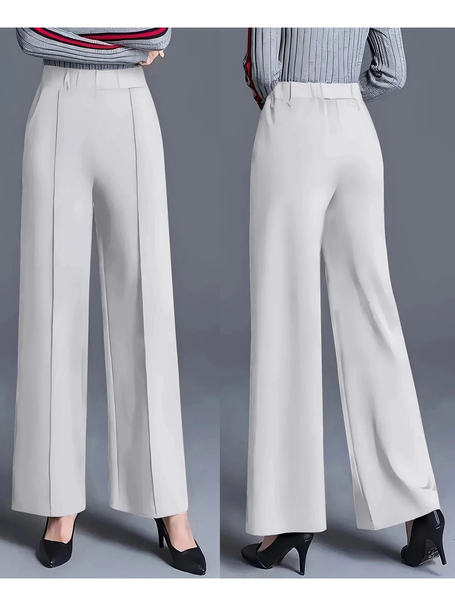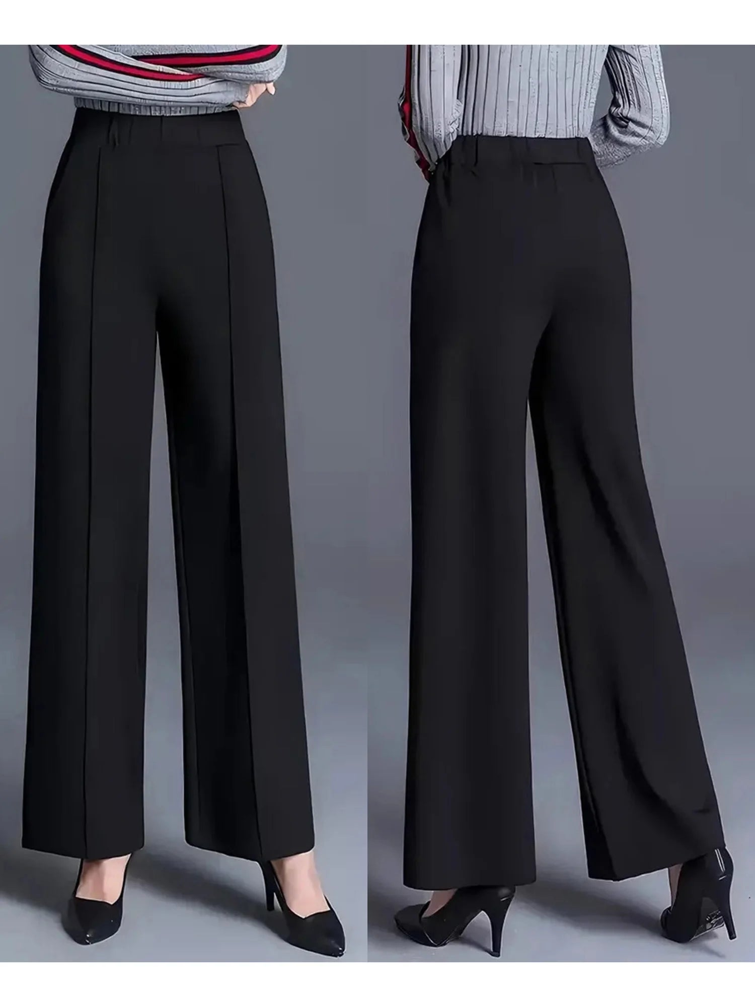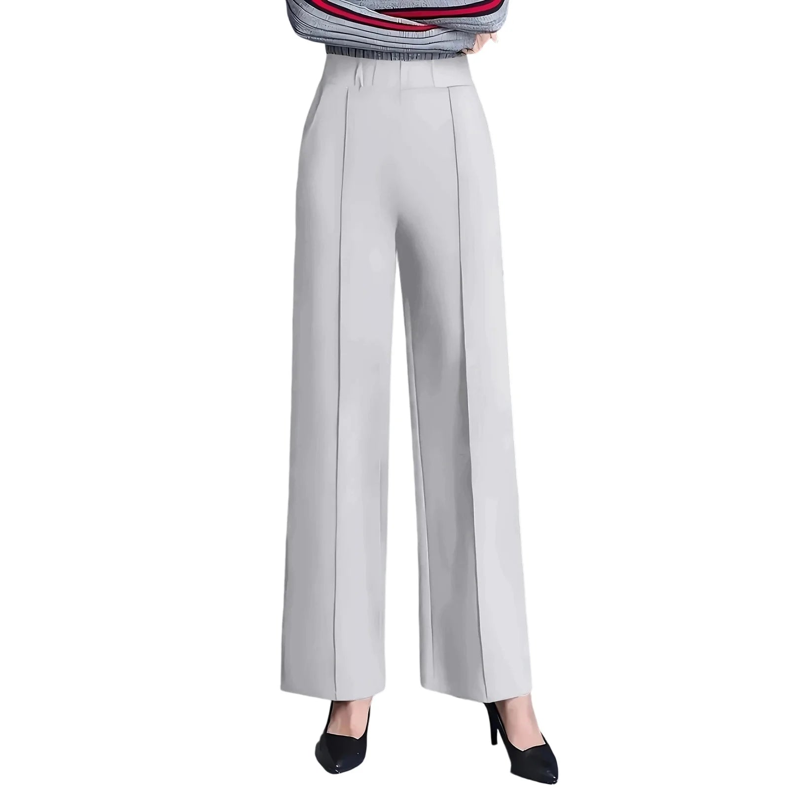 Women s High Waist Straight Leg Pants with Pockets for Business Casual Office Wear - Elastic Waist Dress Trousers