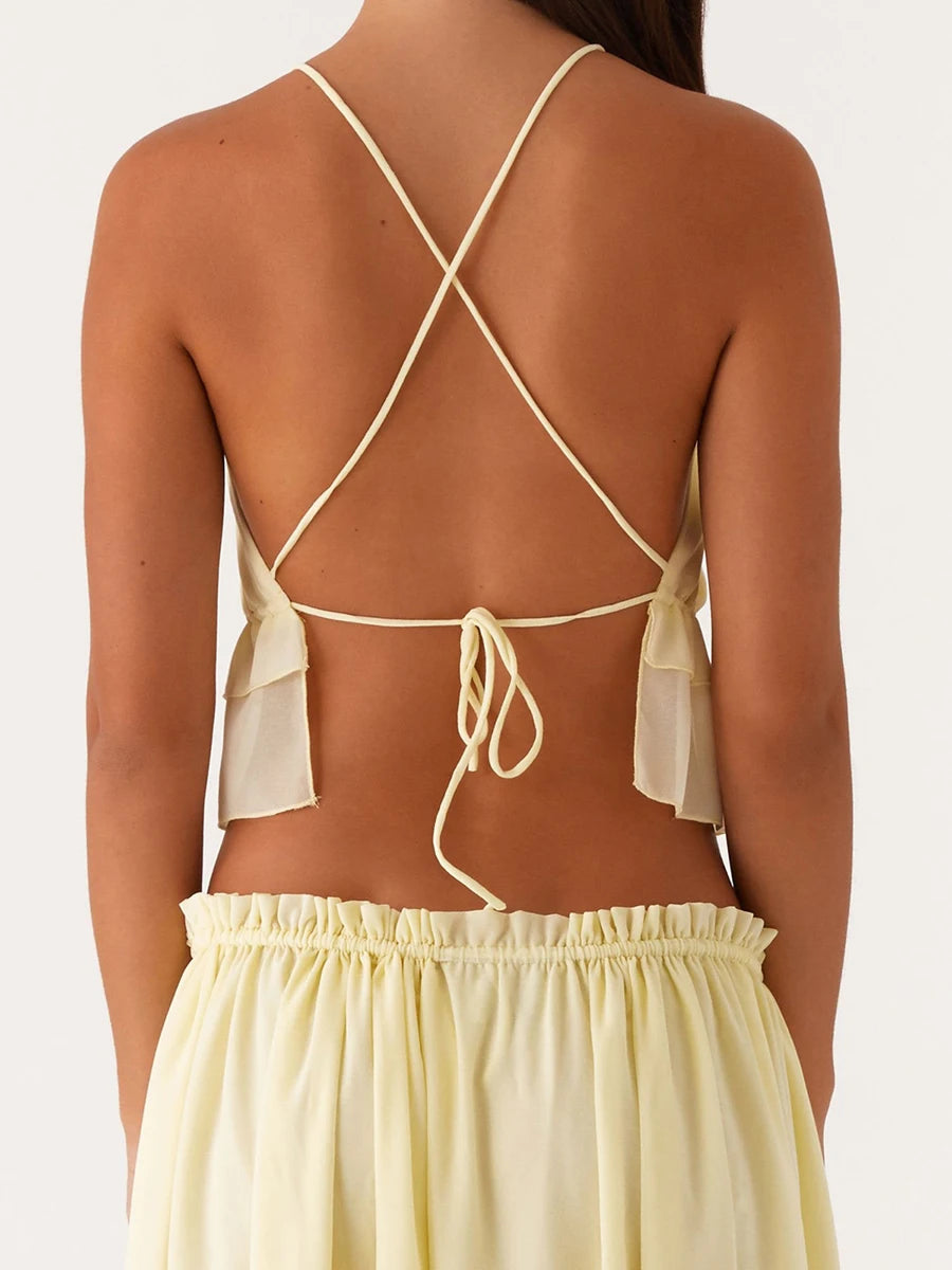 Women Summer Crop Camisole Casual Cross Straps Tie up Backless Spaghetti Straps Tank Tops for Club Streetwear