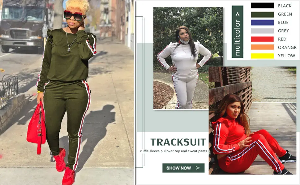 Women's 2 Piece Outfits Ruffle Long Sleeve and Pants Sweatsuits Casual Set