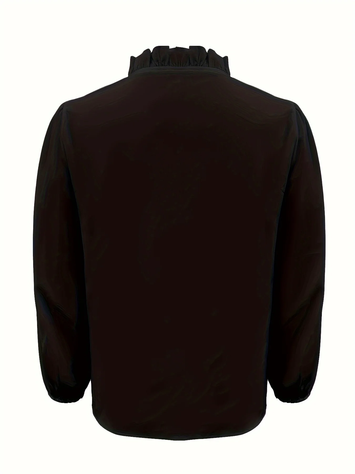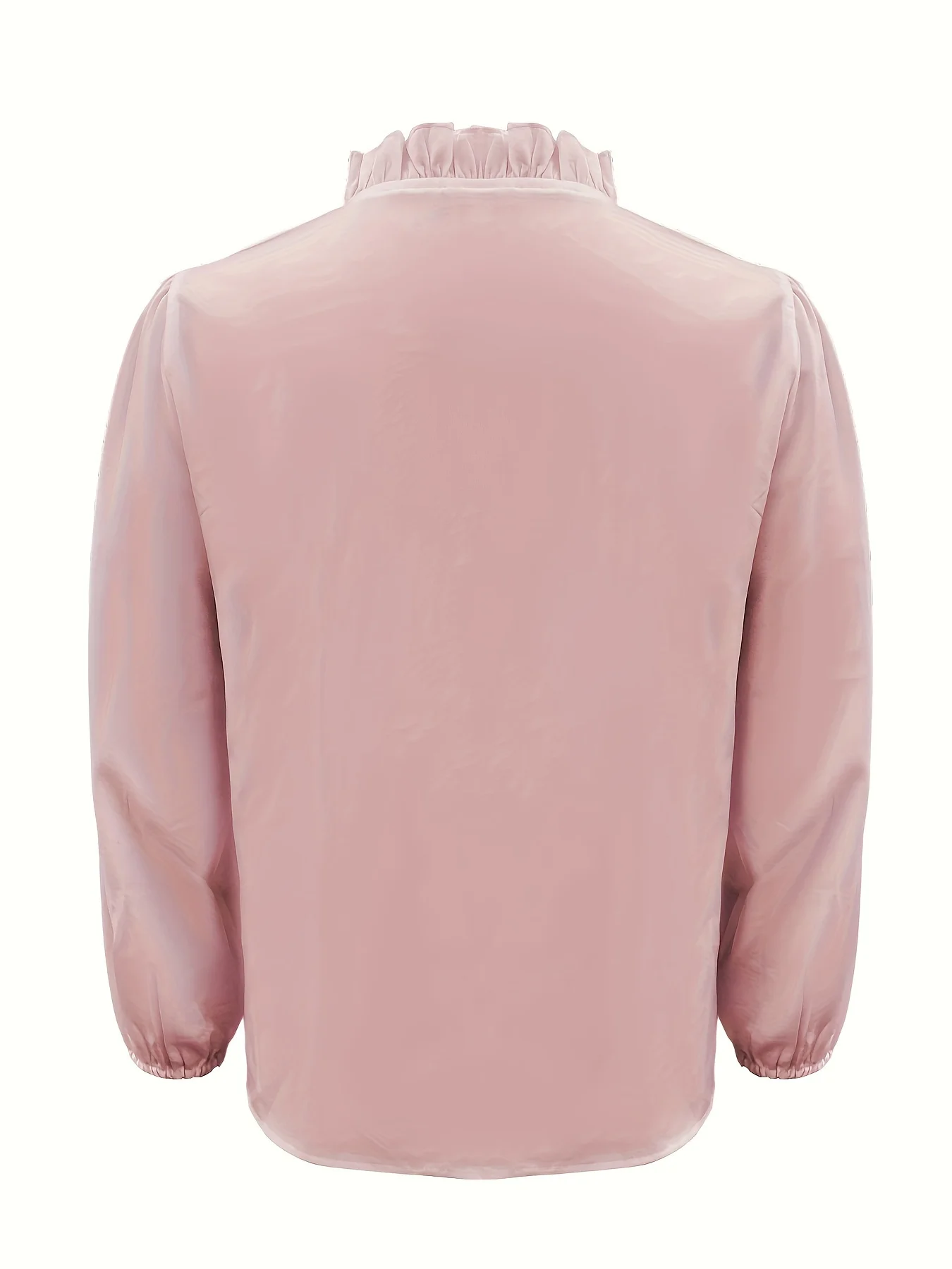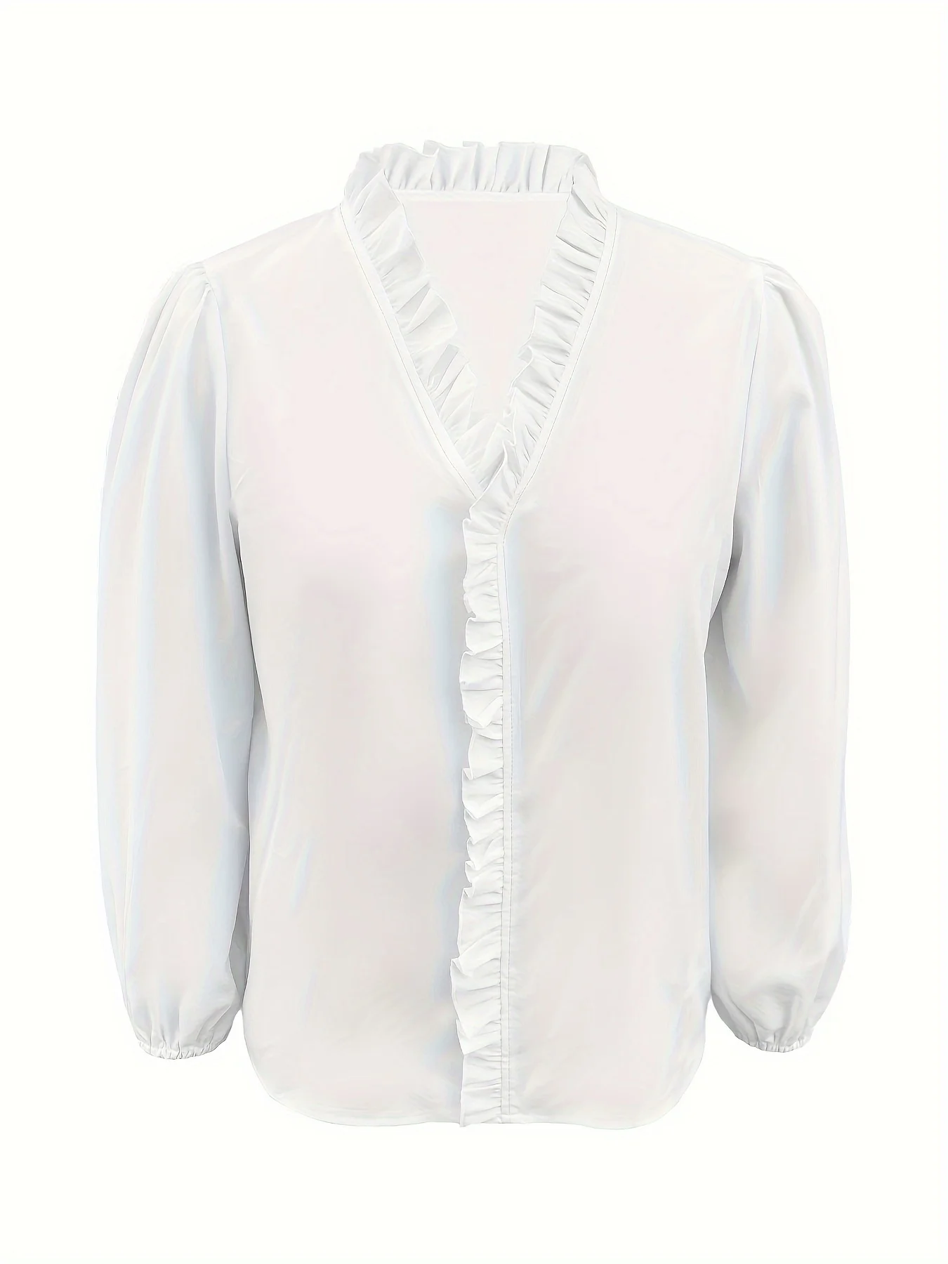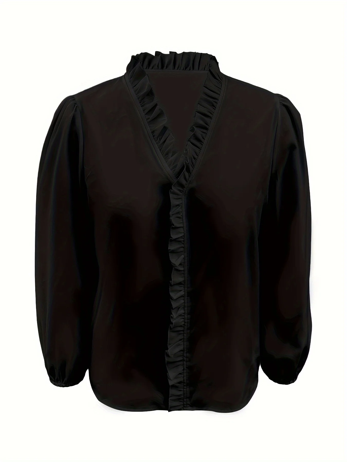 【Unique neckline】: Features a small V-neck with ruffle detailing, setting it apart from standard blouses.