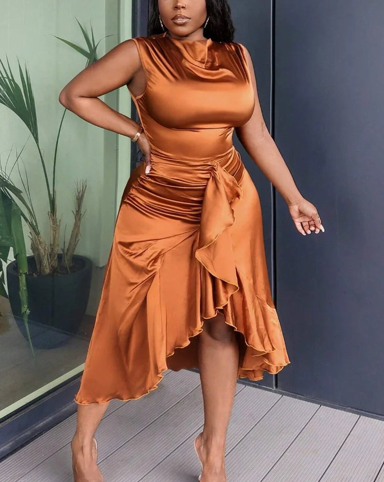 Women's Fashion Sleeveless Dress Elegant Slim Fit - Asymmetric Ruffle Hem Cocktail Party Dress for Night Out Evening Wear