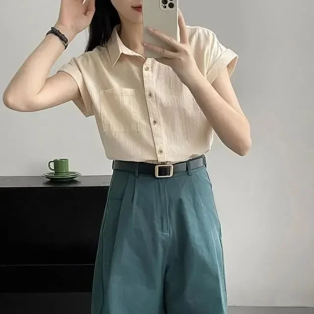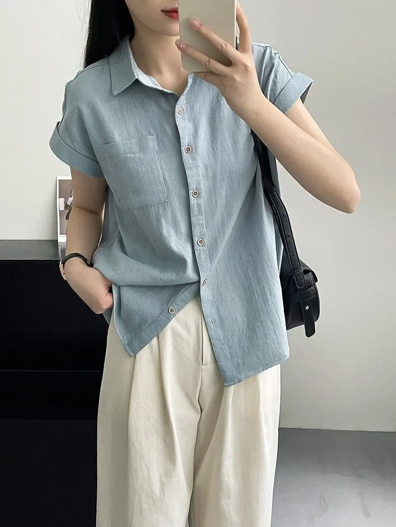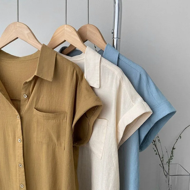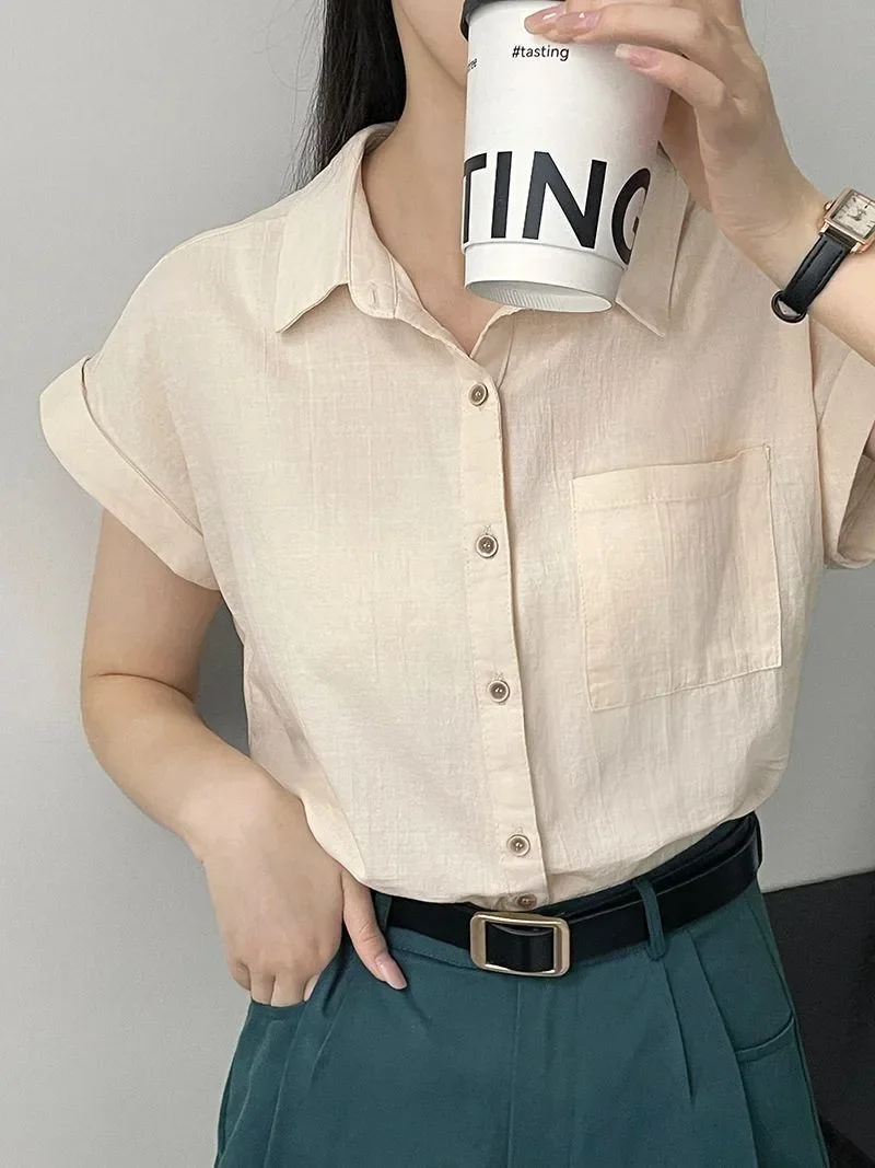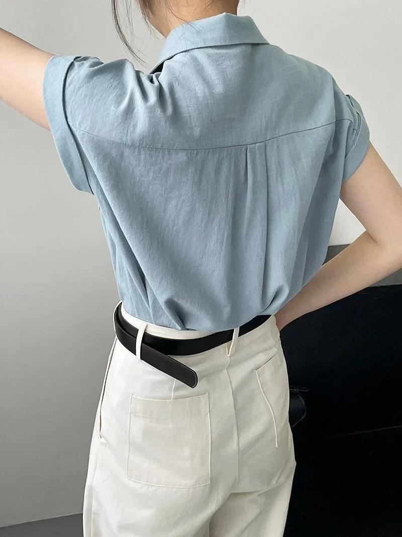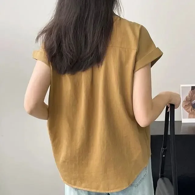 Women's Korean Version of Loose Short-sleeved Polo Shirt Chiffon Lapel Shirt Summer New Fashion Tops Thin Shirt Button Cardigan