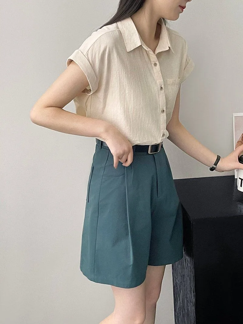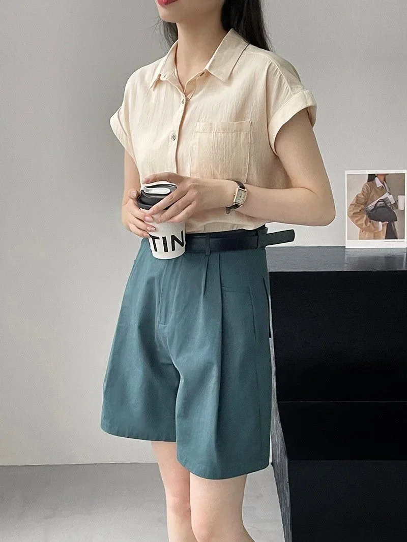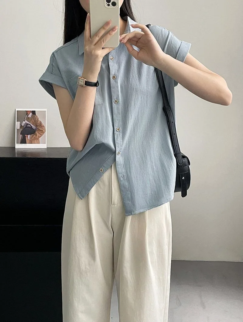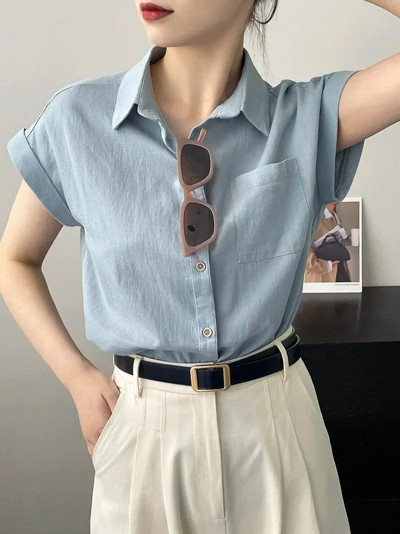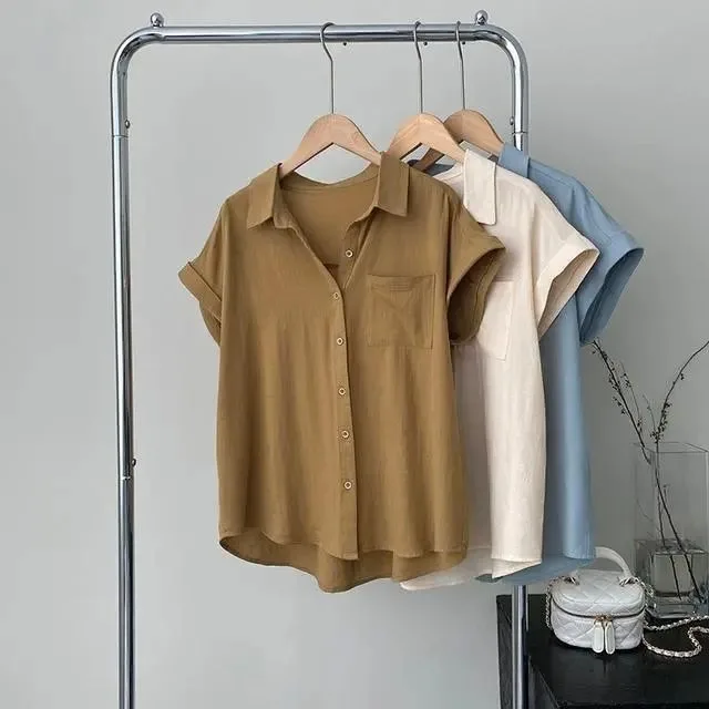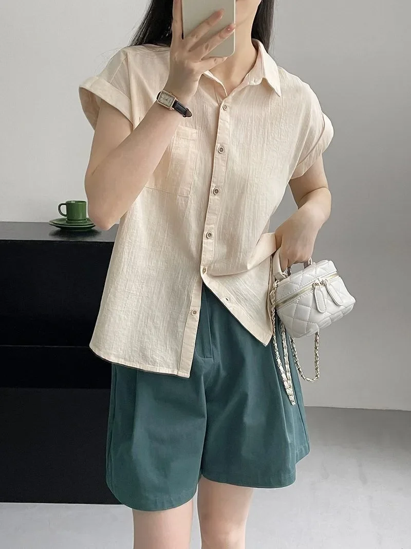 Women's Korean Version of Loose Short-sleeved Polo Shirt Chiffon Lapel Shirt Summer New Fashion Tops Thin Shirt Button Cardigan
