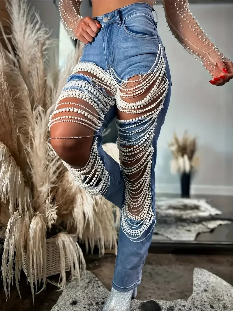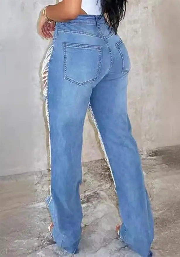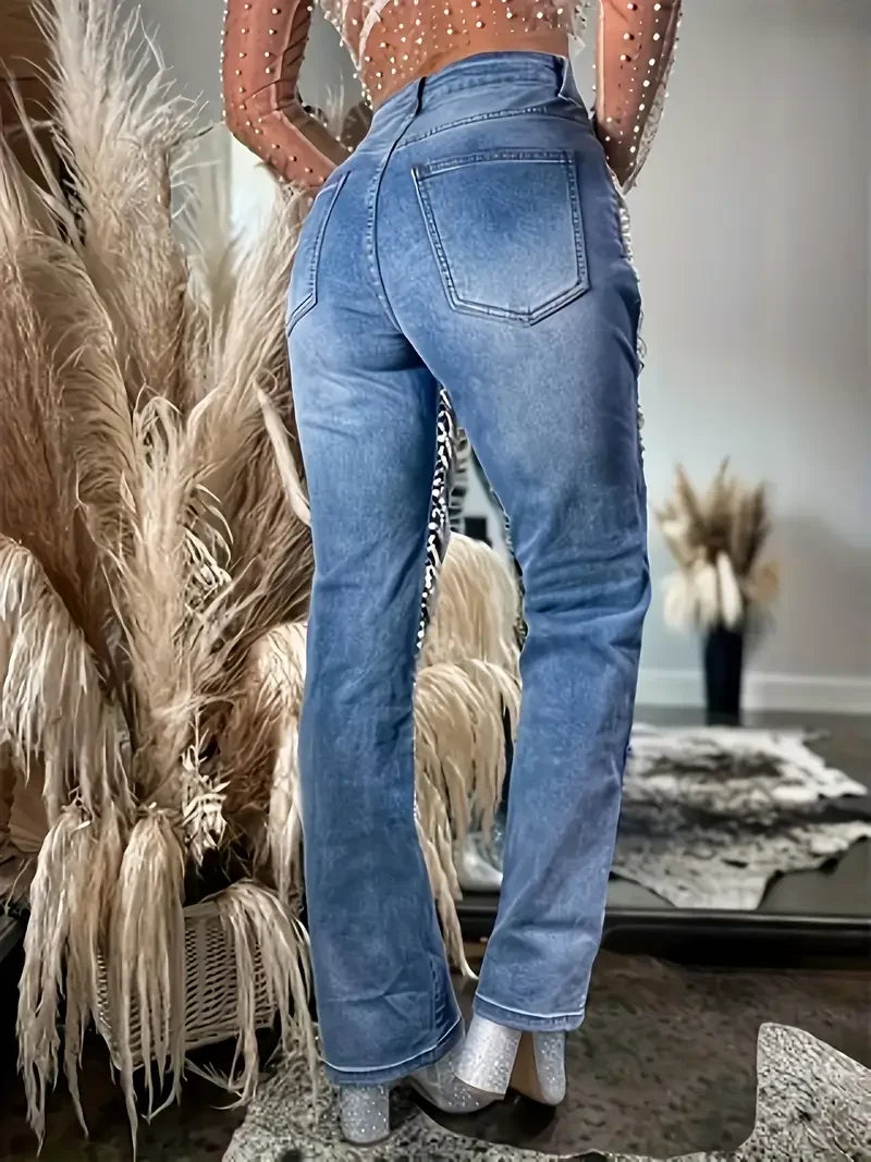 Women's Long Denim Jacket - Blue Belted Trench Coat with Flap Pockets & Straps, Casual Jean Coat for Spring Fall