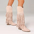 Women's Retro Fringe Knee High Cowboy Boots Fashion Pointed Toe Block Chunky High Heels Pull On Vintage Western Cowgirl Boots