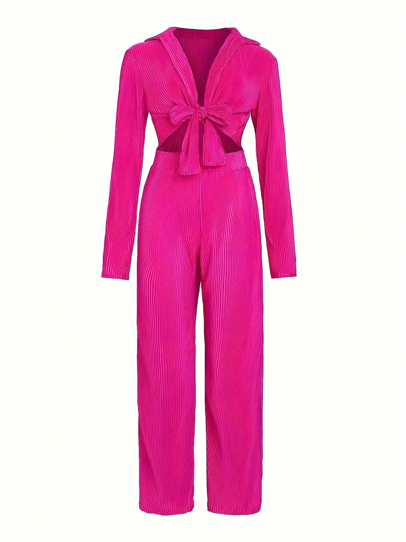 Women's Sexy Two-Piece Set - Long Sleeve Pleated V-Neck Wrap Crop Top & Wide Leg Pants (Streetwear)