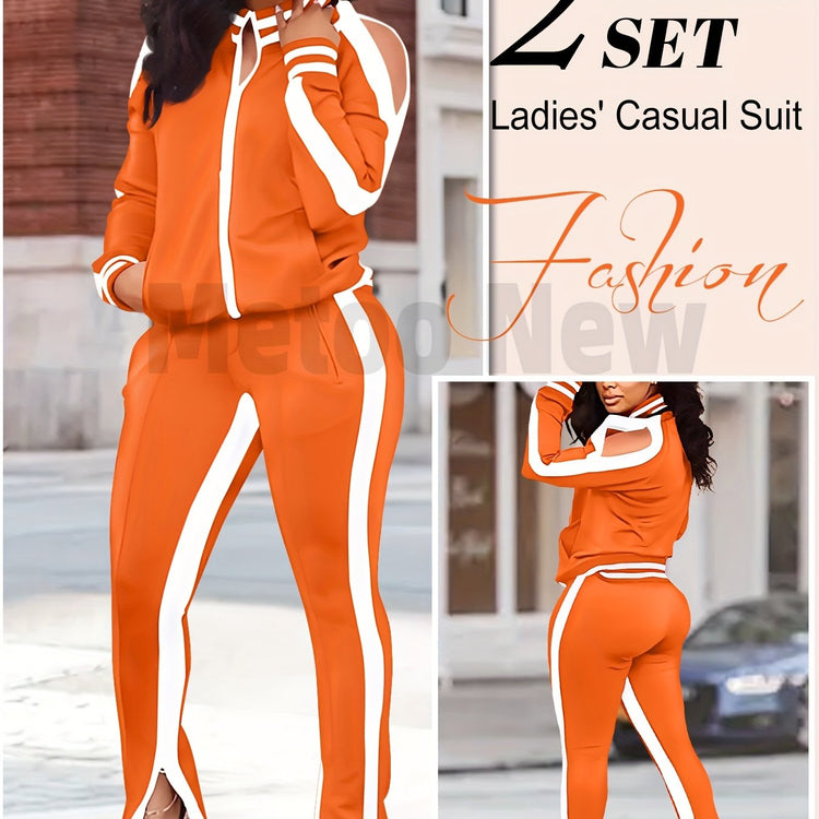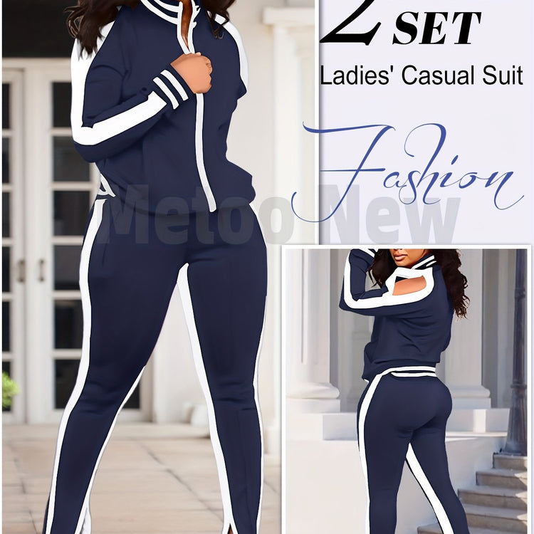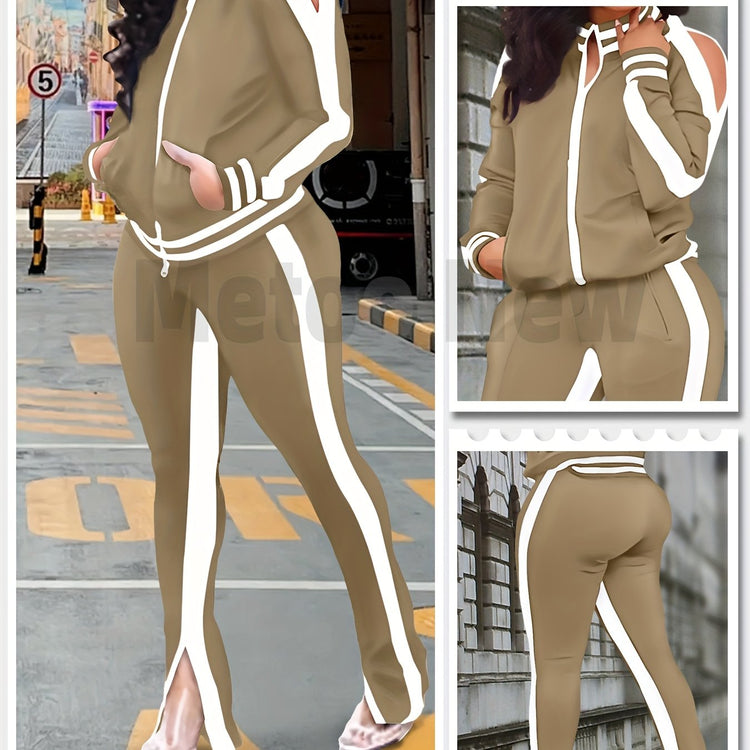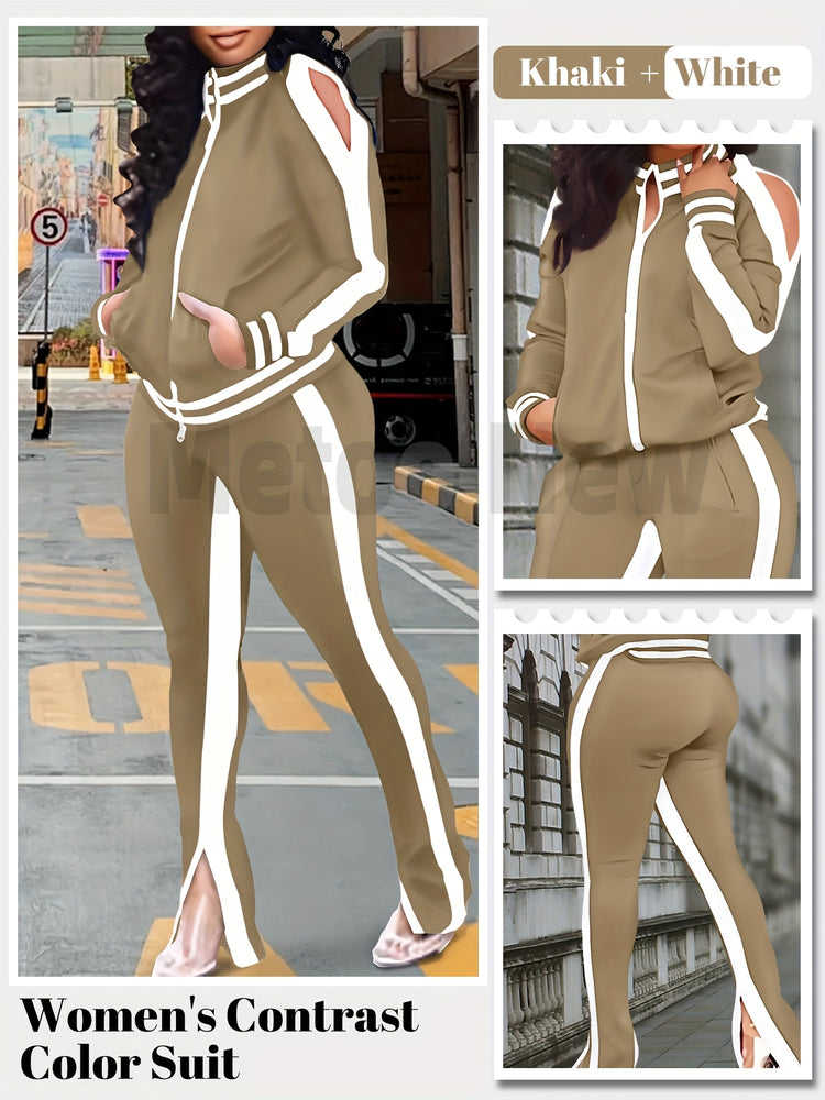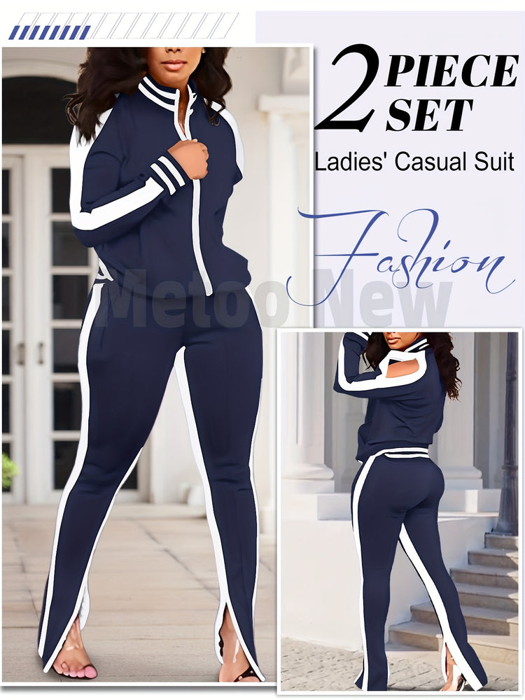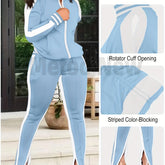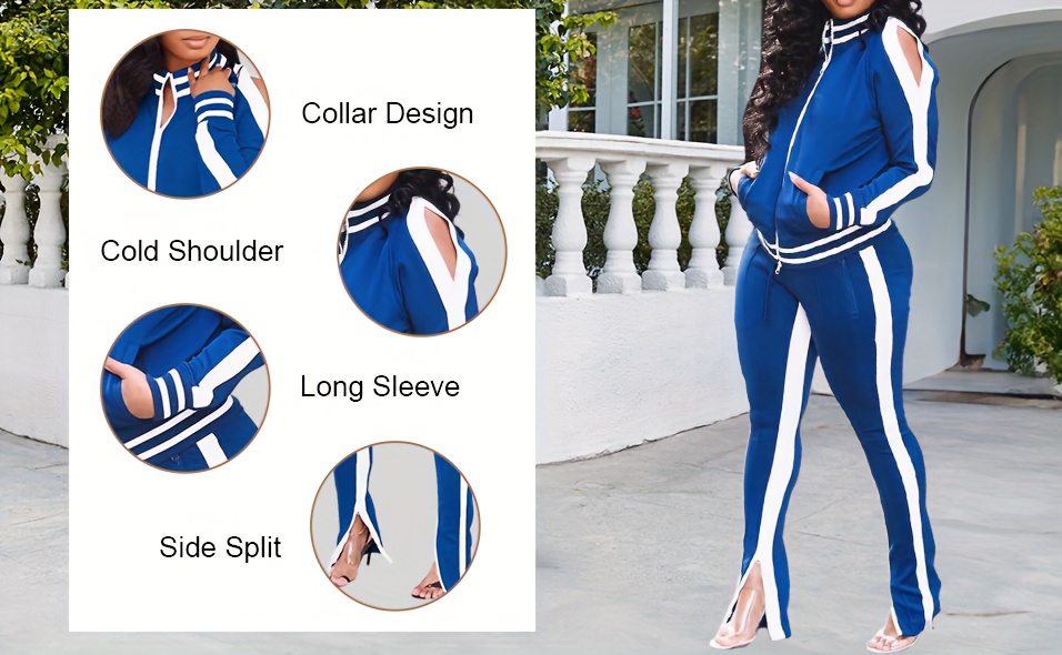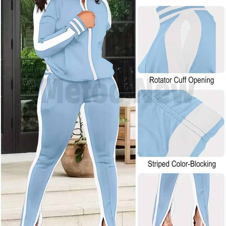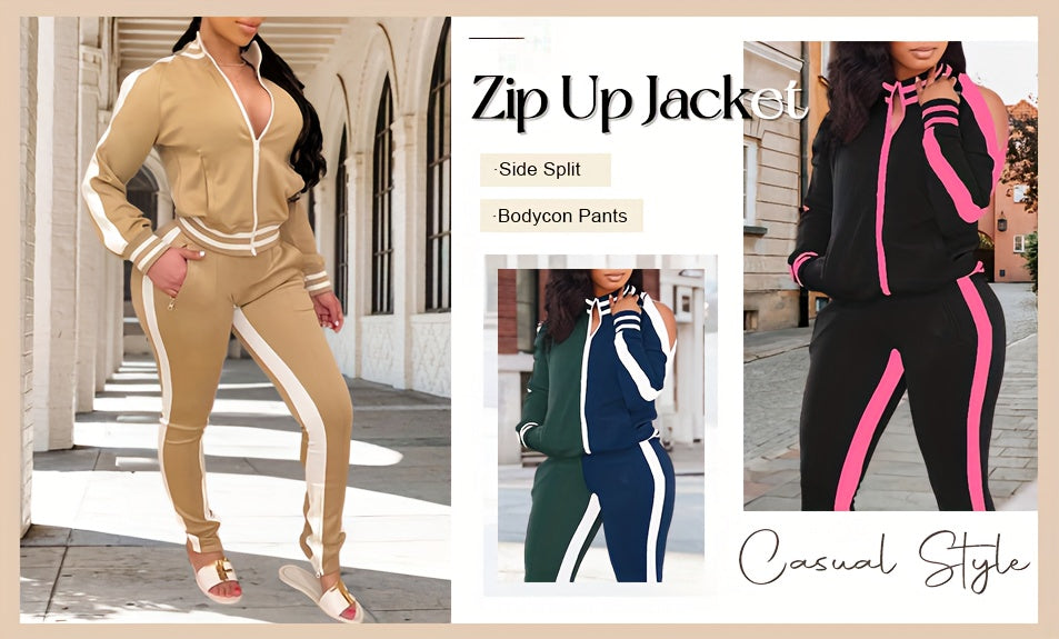 Womens Two Piece Tracksuit Outfits - Club Outfits Sweatsuit Stripe Patchwork Long Sleeve Skinny Pants Split with Zipper
