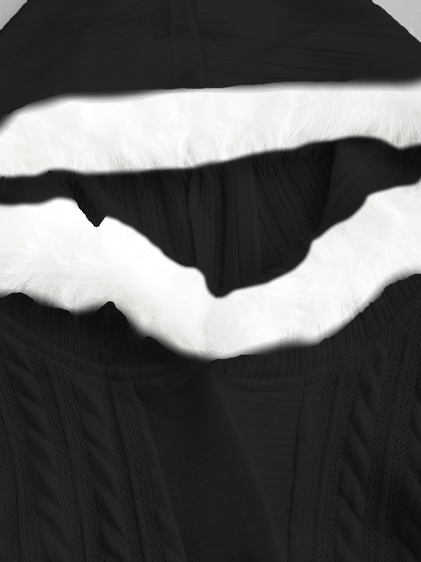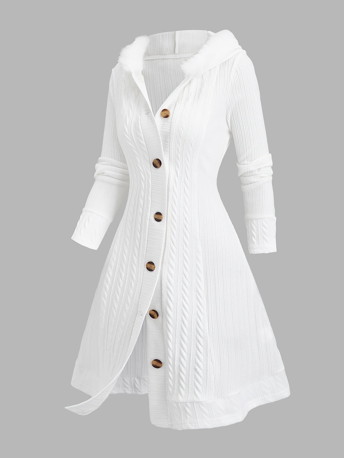 Y2K Cable Plaid Patchwork Hooded Button-Up Long Cardigan